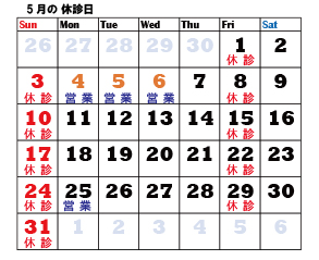 ■休診日 : 日曜日・金曜日(下記をご覧ください)
